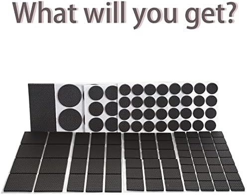 FURNIGEAR 129 SUPER LARGE PACKAGE: Non Slip Rubber Feet gripper package contents: (32) 3/4”, (18) 1”, (8) 1 1/2” round furniture pads; (32) 3/4”, (18) 1”, (8) 1 1/2”square furniture pads; (1) 3 3/8”*6”, (12) 1 1/2”*1” rectangle pads