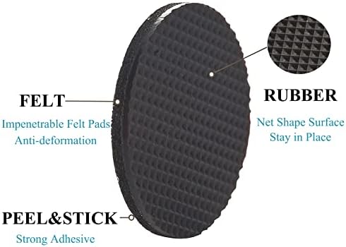 NEW DESIGN: Black rubber feet net shape surface and chair felt double layer combined together with tenacious adhesive. Tightly stick the pads on furniture legs. You don’t need to worry about coming off and replacing frequently