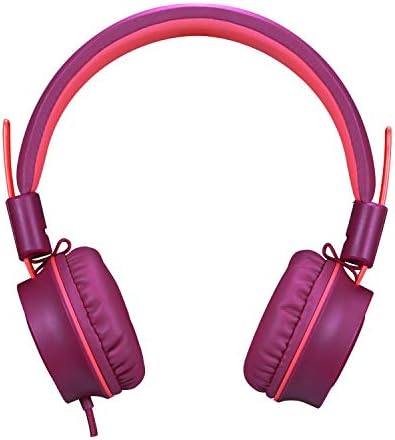 Designed for kids ages 3 to 16, little or older kids, girls, boys, children, toddlers, home/online school, training, long airplane or car rides. On-ear wired headphones have padded soft cushions with a semi-gloss finish for a comfortable fit. The headband is adjustable and flexible to fit most head sizes. The headphones can also be folded in, making it small and compact for easy storage. The cord is a 5 feet long durable nylon braided cable that prevents tangling.