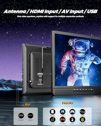Multiple Inputs & Formats: Built-in HDMI, AV, and USB input ports, this portable tv allows connection to various devices such as phones, computers, TV sticks, Raspberry Pi, Xbox, kindle fire, gaming consoles, DVD players for multimedia playback. USB input are capable of syncing external devices with 1080P video (AVI, MPG, MOV, MKV, MP4, TS, VOB, DAT), audio (MP3, WMA, M4A, AAC), picture (JPG, JPEG, BMP, PNG), and text formats