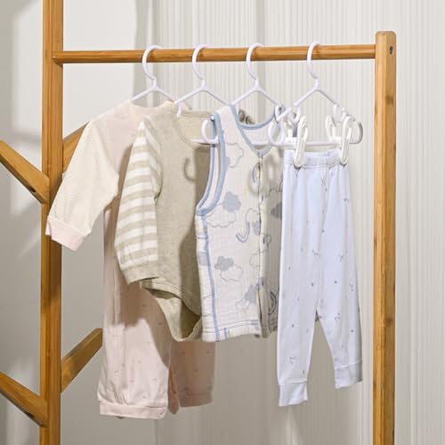 Ideal Size for Baby Clothes-Each hanger measures 10.6″ (26 cm) wide × 5.5″ (14 cm) high — compact and perfectly shaped for baby shirts, pants, skirts, and onesies without stretching or deforming fabric.