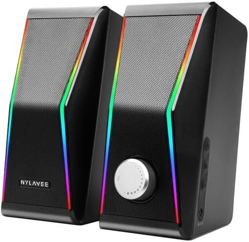 【Compact & User-Friendly】Measuring just 3.2″ × 4.0″ × 7.5″, these computer speakers for desktop PC provide full sound without taking up space. As desktop speakers, three physical buttons and a dedicated volume knob offer intuitive, user-friendly control without software or complicated setup