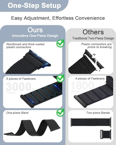 [Skin-Friendly & Comfortable] Experience the soft, silk-like feel of our HEARTBOOM nylon iwatch bands for men women. Designed to be lightweight and breathable, they prevent irritation and keep your wrist comfortable, no matter the activity. When it’s time to refresh, a quick clean is all it takes—so you can enjoy effortless comfort and hygiene anywhere