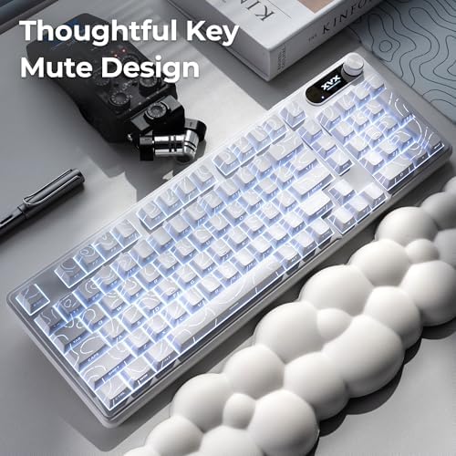 ⌨【Premium IMD Double-Shot PBT Keycaps】The 98% compact layout saves space without sacrificing functionality. The Cherry-profile keycaps are crafted with IMD technology, ensuring exceptional durability, fade resistance, and vivid backlighting. The white contour backlit design enhances light diffusion, offering crisp, even illumination for a striking aesthetic.