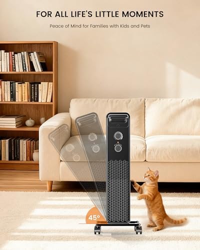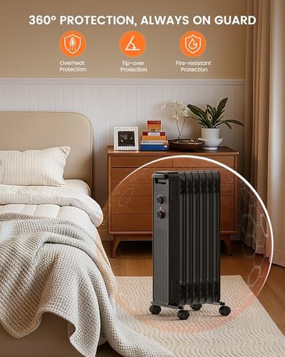 【7-Fin Design: Wider Warmth & Enhanced Safety】 Engineered for maximum efficiency, this oil filled radiator heater features a special 7-wide-fin design that expands the heating surface area, delivering more widespread warmth than standard models. An additional 120° high-temperature cutoff offers extra safety, while the clear power indicator lets you monitor the status at a glance, keeping you in complete control.