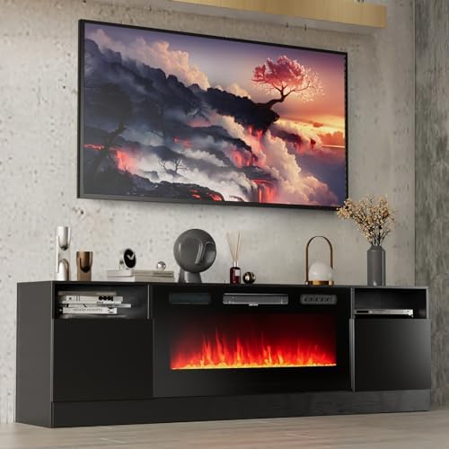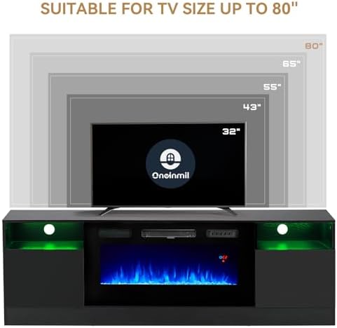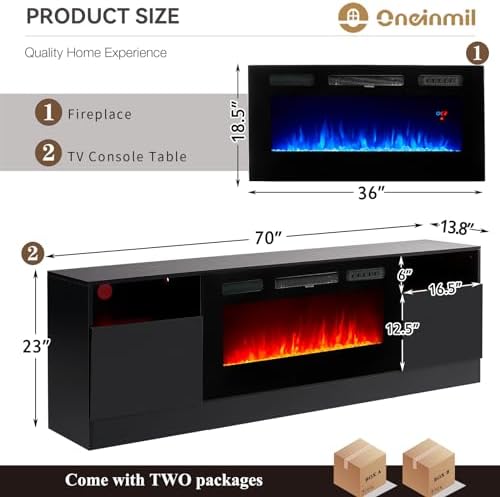 2-IN-1 TV Stand & Fireplace: 70″ stand with 36″ electric fireplace for TVs up to 80″, offering stable viewing & customizable flame colors/dimmer