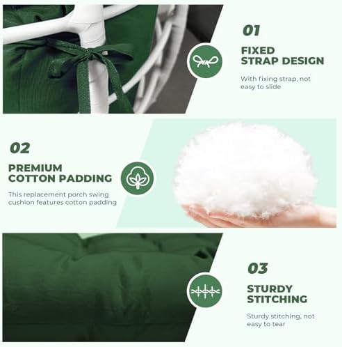 【SOFT AND COMFORTABLE】The egg chair cushion measures 47x40x7 inches with a headrest pillow 17×10 inches. The egg swing cushion is filled with high quality PP cotton and 7 inches thickness make the cushion more soft and comfortable than others. With good resilience, this hanging chair cushion can provide excellent sitting support and rebound effect
