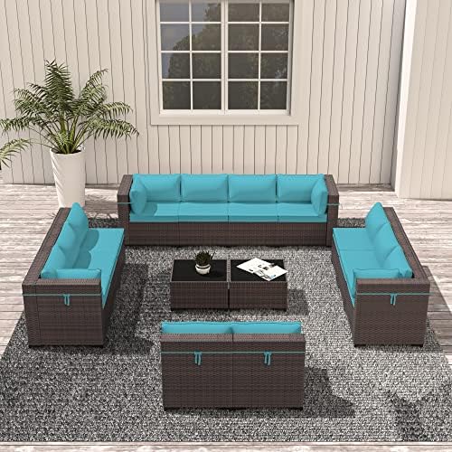 Particulars:ASJMR shop provide high-quality patio furniture sets and warranty service to our customers. The patio conversation set includes 4 Corner sofas ,8 Middle sofas with Cushions , two tempered glass top coffee tables.Sofa Capacity: 360 lbs. (each).