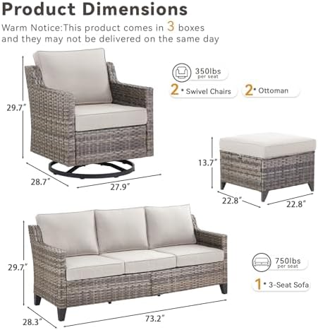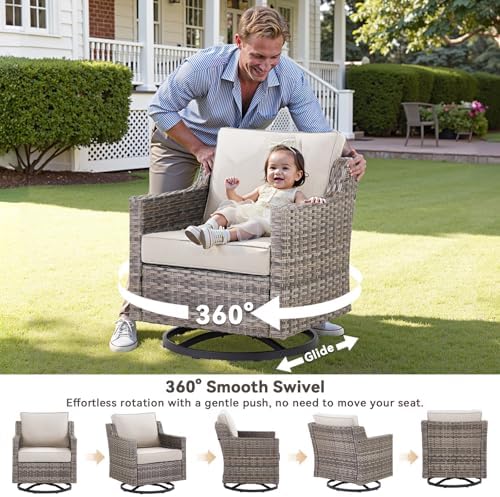Outdoor Patio Furniture Set-5 Pieces All-Weather Wicker Outdoor Furniture with Swivel Patio Chairs Outdoor Patio Conversation Set for Garden Porch Deck Grey/Beige