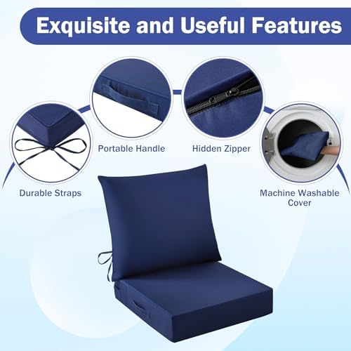Versatile & Stylish-Available in multiple sizes (24″x24″x5.75″+25″x22.5″, 24″x24″x4″+24″x20″)and stylish colors to match any outdoor chairs. Lightweight yet sturdy, these outdoor furniture cushions are ideal for picnics, BBQs, poolside lounging, or balcony seating—making every outdoor moment more enjoyable.
