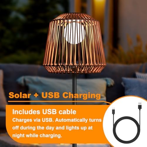 Extended Lighting Duration: Equipped with a solar panel on top of the vine shade, this lamp charges fully during the day and provides 6-10 hours of continuous lighting. The dual charging option (solar and external) ensures consistent lighting for your outdoor spaces, making it perfect for gardens, patios, and other outdoor areas