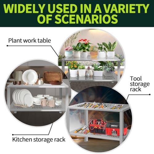 【MATERIAL】: This utility table is made from Stainless steel construction which is weather resistant. This sturdy potting bench is durable enough to stand up to the elements and give you years of use. Additionally, the screws used for connection are selected and rustproof.