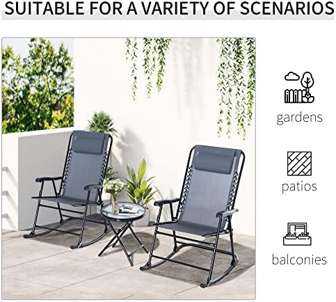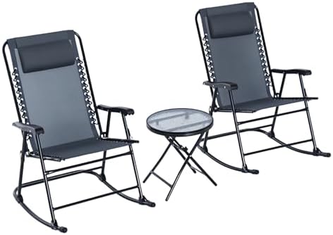 3 Piece Patio Furniture Set: The chic outdoor rocking chairs set including 2 foldable rocking chair and a round coffee table is the perfect addition to any outdoor patio, deck, or balcony.