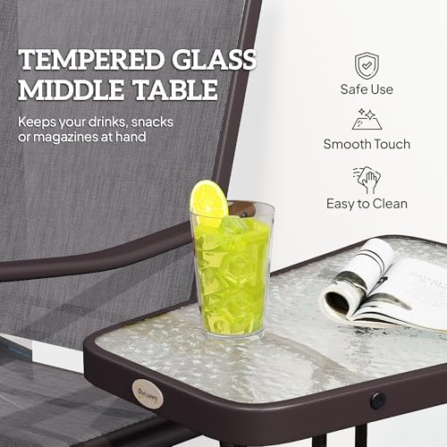 Quality Materials: The combination of ventilating, maintenance-free sling fabric on a durable steel body gives our double glider chair with a table comfort and extra durability.