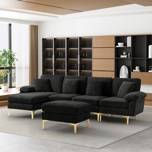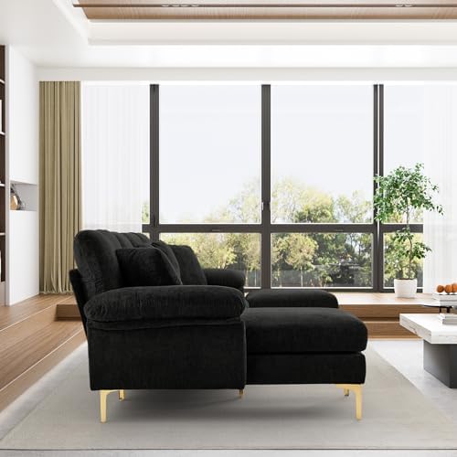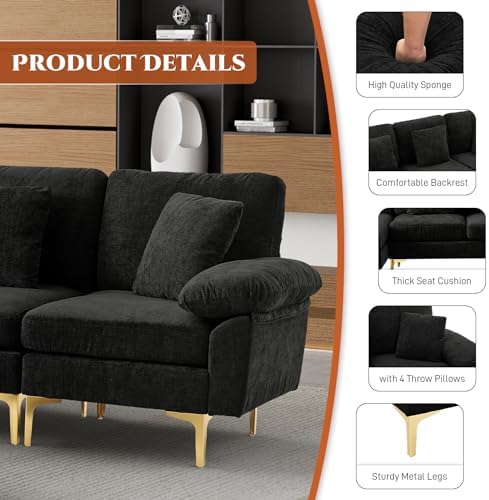 【Soft and Comfy Black Couches for Living Room】Upholstered in Chenille, padded with thick, high-density foam, this black sectional couches for living room provide ultra comfort and support, allowing you, your family and guest to enjoy great days and nights. The black velvet sofa comes with 4 throw pillows for additional support.