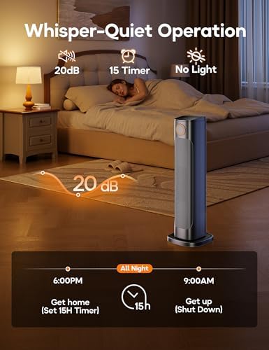 🔥【Ultra-Quiet 20 dB Operation】 Designed for tranquility, it operates at a whisper-quiet 20 dB. Ideal for bedrooms, offices, or study areas, it delivers consistent warmth without disrupting your sleep, work, or relaxation.