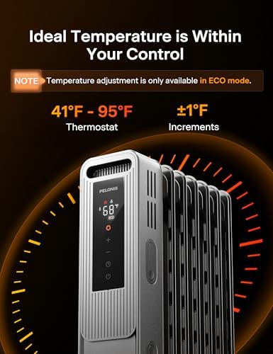 Advanced Safety: Built with tip-over protection, PELONIS Oil-filled heater is made of V0 flame retardant materials, will automatically shut off when overheat, defense against any potential accidents and ensure family’s safety, also equipped with child lock