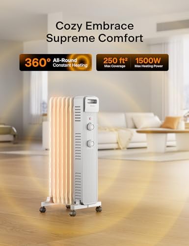 360° All-Around Heating: Our oil radiator heater boasts 7 advanced fins and high-conductivity thermal oil, improving heat efficiency by 32%. Experience faster, more even warmth throughout your space.