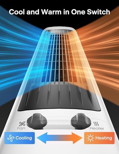 All Season Comfort: This 2-in-1 tower heater and fan combo has 3 cooling fan speeds and 2 heating speeds to keep you comfortable year round.