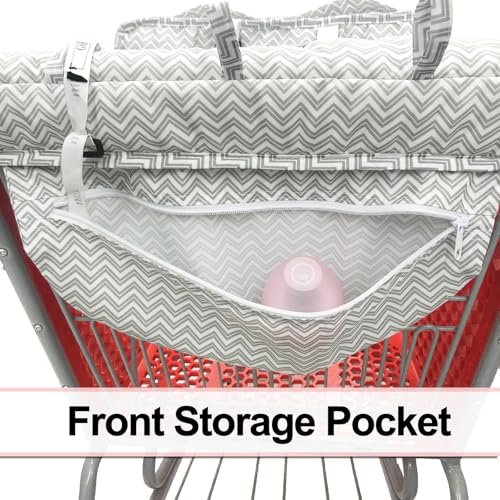 Universal fit both shopping cart and baby high chair 5 point safety shoulder harness system added security. Soft cotton padding added comfort. Handy to carry with attached handbag. Machine washable.