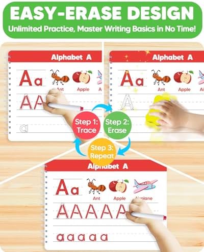 Easy-erase Design, Unlimited Practice: The Montessori workbook is made of safe, waterproof, durable hardcover material, and each page is easy to erase, glossy and reusable. With 8 colorful dry-erase markers and 1 whiteboard eraser, writing marks can be easily wiped away, perfect for drawing by those little hands hungry for knowledge.