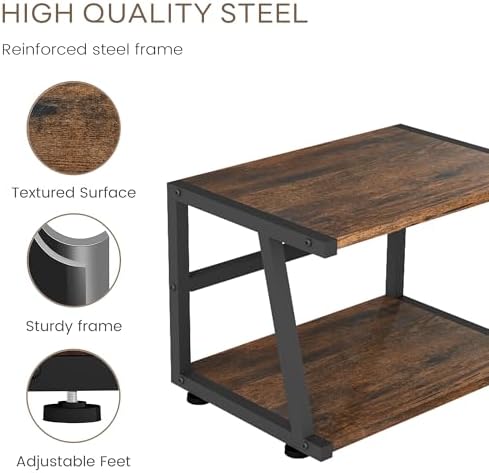 STRONG AND STABLE: Our desktop printer stand is manufactured at our own factory using the latest automated equipment for very precise error free detailing with a laser cut and laser welded powder coated steel to produce an exceptionally strong and stable structure with a 60 Lb. weight capacity. Our shelves are constructed with auto machined MDF and robotically trimmed veneers. It will never shake or wobble when printing or scanning your documents.