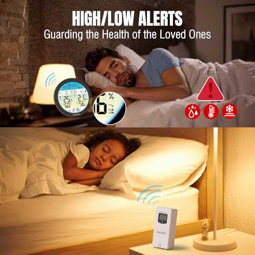 【Intelligent Alerts for Extreme Conditions】Get alerts for high/low temperature and humidity outdoors, frost warnings (no alarm sound), mold risk level indoors, and real-time comfort level display.