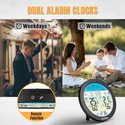 【Dual Alarms + Light Sensor Backlight】Set two alarms with snooze function. Enjoy 4-level adjustable backlight with ambient light sensor for perfect readability day or night.