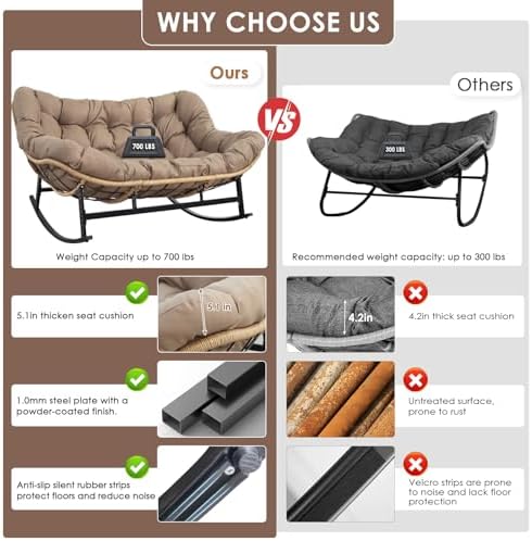 HEAVY-DUTY FRAME: Constructed with a reinforced steel frame, this double papasan rocker is designed to support up to 700lbs for enhanced stability; A solid choice for daily use by couples, families, or guests