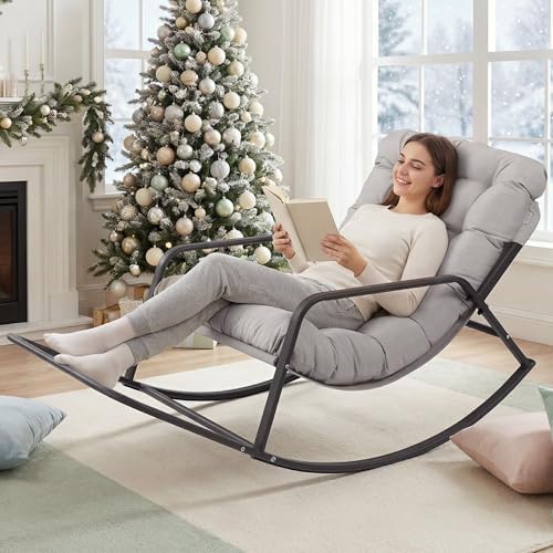 FOOTREST & ARMREST DESIGN: This rocking lounge chair features a built-in footrest, offering added relaxation while you rock or use it as a footstool; The 1.6-inch wide armrests provide extra comfort and support for lounging, reading, meditating or chatting