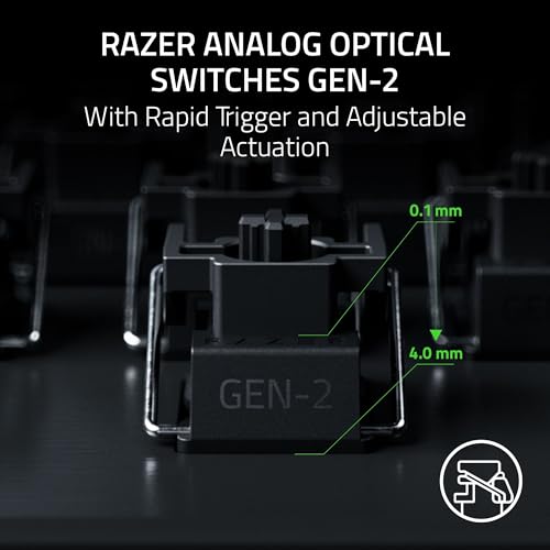 ANALOG OPTICAL SWITCHES GEN-2 — Max out on precision and response with next-gen switches featuring Rapid Trigger for ultra fast repeated inputs, a 0.1–4.0 mm adjustable actuation range, and a 100 million keystroke lifespan