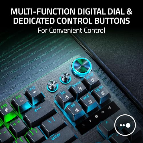“Blitz through the competition with the Razer Huntsman V3 Pro Tenkeyless 8KHz—designed for pros with ultra-fast, highly responsive performance. Featuring Razer Analog Optical Switches Gen-2, this keyboard offers Rapid Trigger for lightning-fast repeated inputs and an adjustable actuation range of 0.1–4.0 mm, ensuring precision with every keystroke. With a 100-million keystroke lifespan, it’s built for durability and performance. Razer Snap Tap technology prioritizes the latest input between two selected keys, allowing for near-instant directional changes and faster execution. Experience true 8000 Hz HyperPolling for near-zero latency, offering a polling rate 8 times faster than the industry standard, giving you a split-second advantage in every game. Make quick onboard adjustments with an LED array indicator to fine-tune actuation height or Rapid Trigger sensitivity, and save settings directly to the keyboard with no software needed. Enjoy an optimized keystroke feel with individually lubricated switches and thick foam dampening to deliver smooth, muted acoustics, keeping you in your flow state. The multi-function digital dial and dedicated control buttons provide convenient management, allowing you to adjust volume and analog switch settings, plus media control and custom macros, all at your fingertips. Elevate your gaming with the keyboard designed to meet the demands of the world’s best players.”