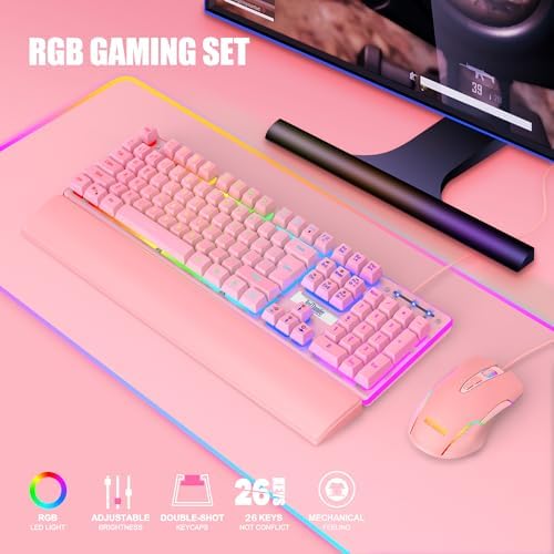 【Upgraded RGB Lighting Gaming Combo】All the keys of the keyboard, the light bar on the bottom side of the keyboard, and the RGB lights on the side of the mouse will glow. Your fingertips dance on the designed floating keycaps and click on the hyper-responsive mouse, accompanied by rainbow-like RGB lighting, allowing you to instantly enter the cool game state.