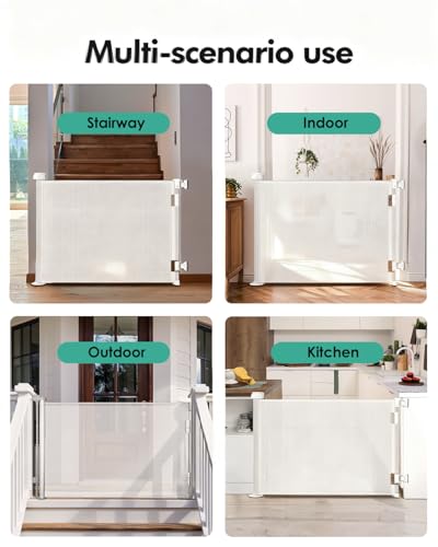 One-Handed Operation & Versatile Use:Designed with busy parents in mind, this retractable baby gate allows one-handed opening and closing—even when holding your baby or carrying groceries. Suitable for stairs, bedrooms, kitchens, living rooms, or patios, it provides a safe and versatile solution for both indoor and outdoor use.