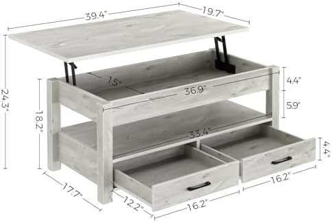 Sturdy & Durable Structure High quality spring hinges system enables the tabletop to be lifted up or lowered down effortlessly and noiselessly. MDF board and metal frame ensure stability and durability for years of use. Dimension: 39.4″ W x 19.7″ D x (18.2-24.3)” H; Load capacity up to 100 lbs.