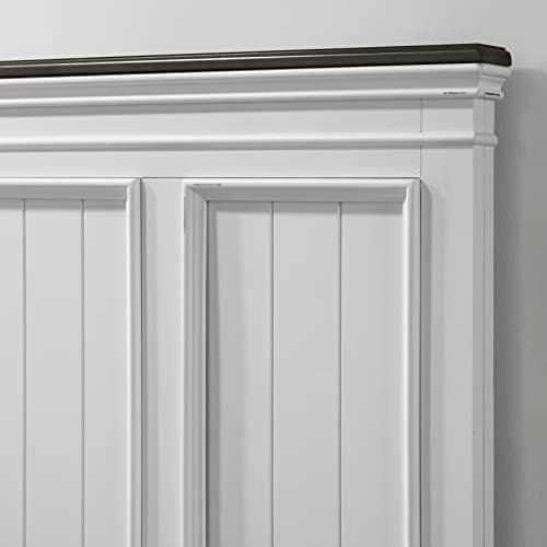 The set includes king bed, dresser, mirror, two nightstands, and chest. Classic lines and shiplap panel details on the bed. The distressed mark and delicate carved trim bring a touch of modern farmhouse style to this set. The bed includes headboard, footboard, rails, and 4 slats