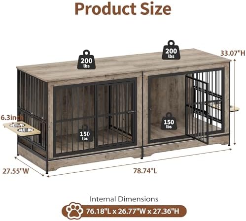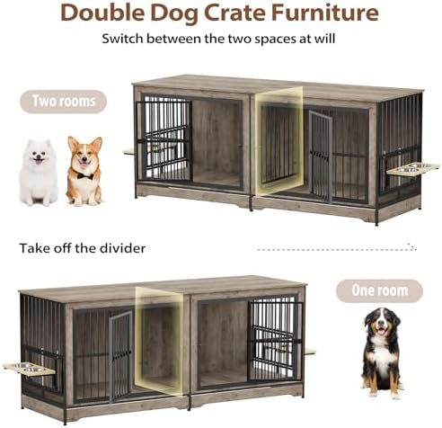 Double Dog Crate Furniture TV Stand, designed for pet owners who value both practicality and style. This multifunctional piece doubles as a cozy home for your pets and a modern entertainment unit for your living space.Product Dimensions: