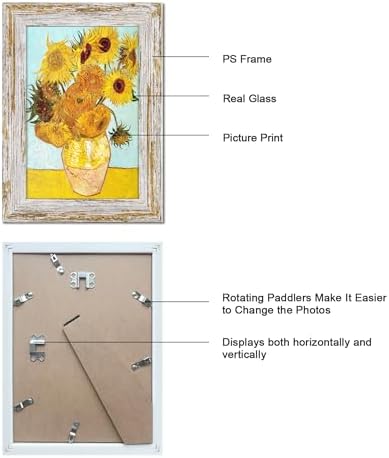 PREMIUM QUALITY: These frames with distressed retro design are more beautiful and abrasion resistant. Polished real glass cover prevents scratches and damages to your photos to protect your artworks or posters over the years.