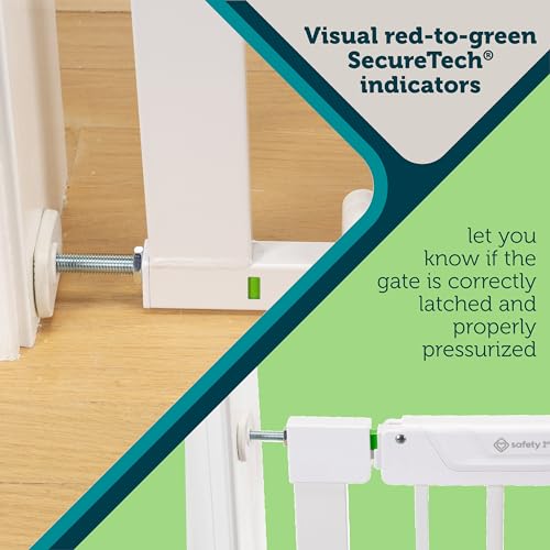KEEP IT SECURE: This safety gate for toddlers is equipped with SecureTech, Safety 1st’s red-to-green indicators that let you know if the gate is correctly latched and properly pressurized
