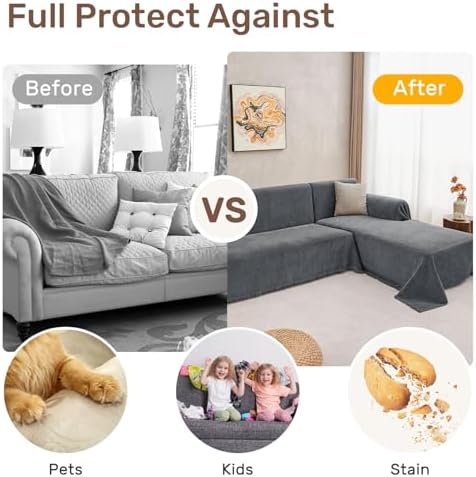 Couch Covers For Sectional Sofa:Our l shaped sofa covers crafted from premium,thick chenille fabric,are incredibly soft,comfortable.They not only give your sectional a fresh new look but also provide a skin-friendly surface that resists pet hair for everyday use