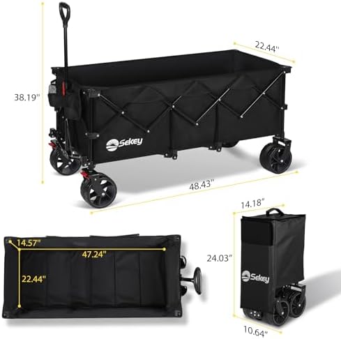 【𝐔𝐥𝐭𝐫𝐚-𝐒𝐭𝐚𝐛𝐥𝐞 𝐒𝐭𝐫𝐮𝐜𝐭𝐮𝐫𝐞】:𝐏𝐚𝐭𝐞𝐧𝐭𝐞𝐝 frame structure, using pipes that are 𝟐𝟎% thicker than normal wagon, is more stable and secure than other push carts .loading capacity up to 𝟒𝟒𝟎𝐥𝐛𝐬.With Φ 𝟳” 𝐛𝐢𝐠 𝐚𝐥𝐥-𝐭𝐞𝐫𝐫𝐚𝐢𝐧 wheels and brakes,Sekey wagon can move smoothly for any occasion.