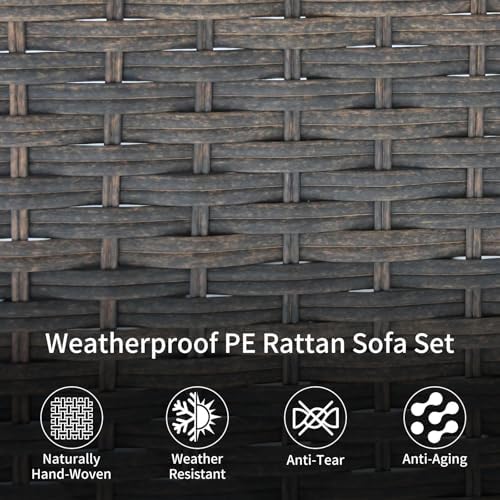 【All-Weather Durability & Easy Maintenance】The frame is wrapped in handwoven, PE rattan that won’t fade, crack, or peel. The cushion covers are made of water-resistant, fade-proof Olefin fabric with smooth zippers for easy removal and machine washing. Simply wipe the wicker with a damp cloth to keep it looking new.