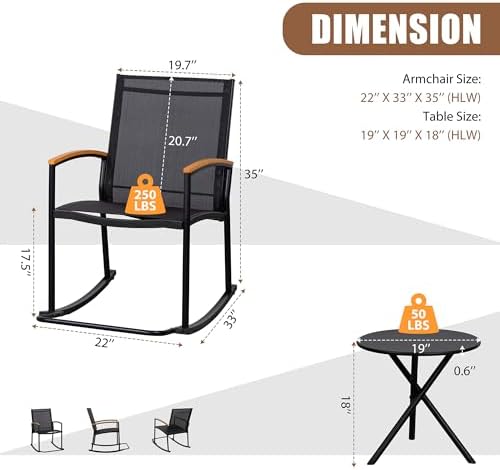 Making by selected steel, the rockers are sturdy enough. Also the better balanced design is equipped to improve your sitting experience. The breathable textilene fabric seat won’t let you feel any of uncomfortable.
