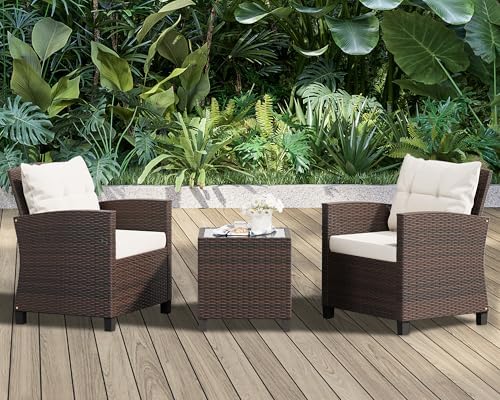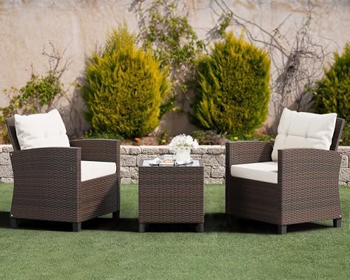Premium Materials: This outdoor three-piece set is meticulously handcrafted using high-quality natural rattan, showcasing exquisite craftsmanship and enduring quality. Each strand of rattan is carefully selected to ensure a smooth and comfortable surface.