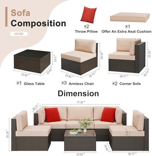 Multiple Combination: Use your imagination to create the most beautiful 5 Pieces Patio Furniture Sets, Each part of this 6- piece patio furniture could be used separately, easily allowing to be combined into different configurations according to your needs. And there’s a glass tea table where you can display your favorite things. Such as potted plants, vases and even small televisions. Offer a Bonus Seat Cushion as a Gift, the table can be an extra seating making this set a patio daybed