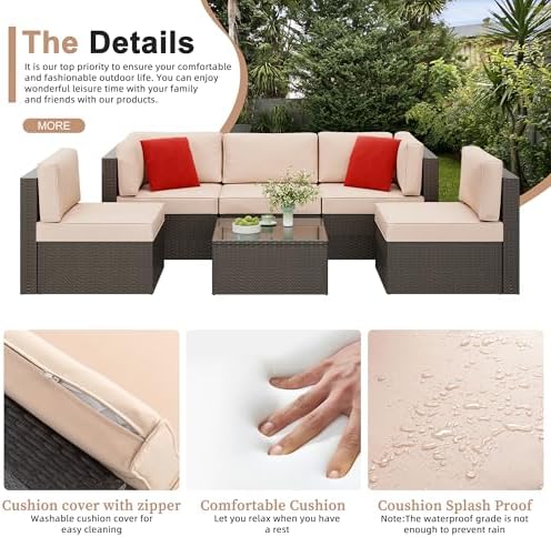 Easy maintenance: This product contains 13 cushions, which can be removed and washed, cushion surface has special material can waterproof splash, PE wicker very smooth and light, easy to maintain. You don’t need to waste a lot of time on maintenance. Cushions are covered in fade-resistant polyester fabric, which is easy to remove and clean