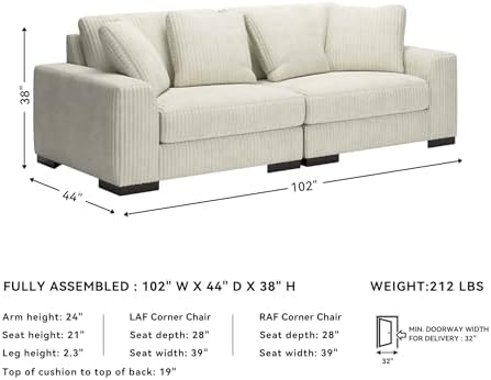 DIMENSIONS: 102″ W x 44″ D x 38″ H. Includes 2 pieces: left-arm facing corner chair and right-arm facing corner chair. “Left-arm” and “right-arm” describe the position of the arm when you face the piece