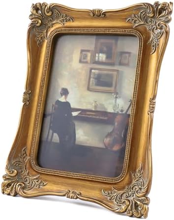 Vintage frame is made of resin.With high definition glass front to give a clear view of your picture and preserves the life of your photo.Comes ready to hang, either in horizontal or vertical.Standing up either portrait or landscape.