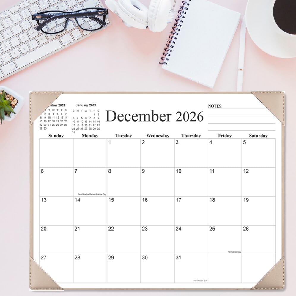 PREMIUM QUALITY – Using 140 gsm high quallity paper for this 2025-2026 large desk calendar. The thick, matte paper allows smooth writing and prevents ink bleeding, make it fits most pens.