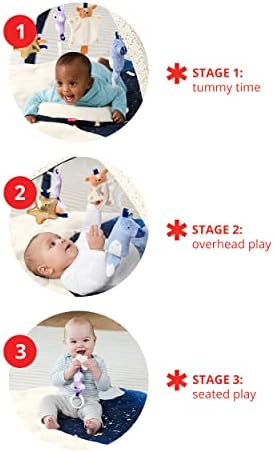 3 Ways to Play: Our Celestial Dreams Tummy Time Mat seamlessly transition between three play modes – tummy time, overhead play, and seated play – providing opportunities for your baby to learn and explore at every stage of development